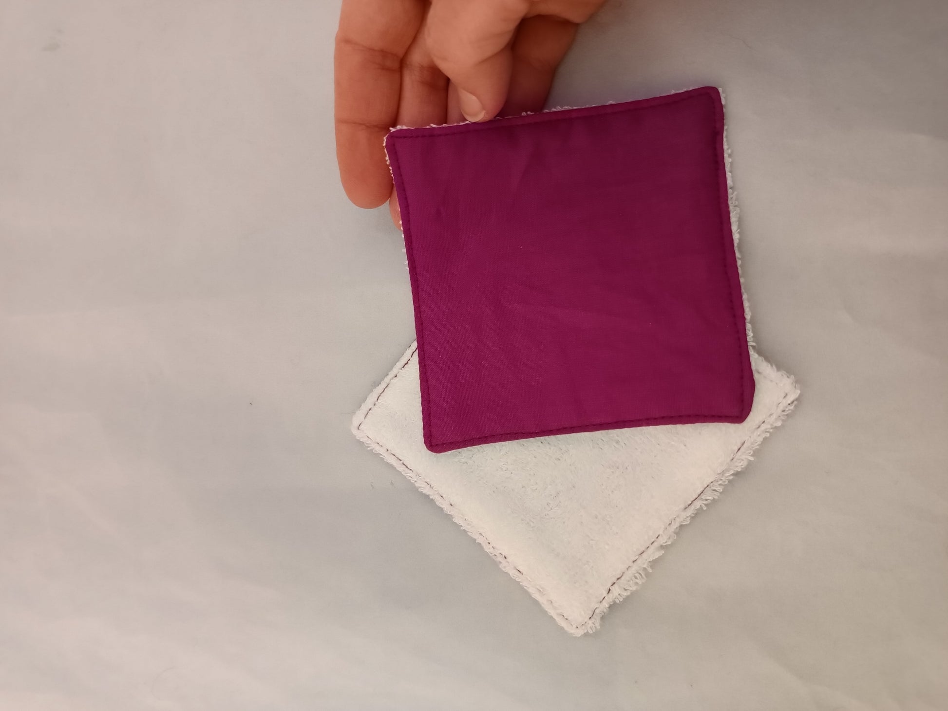 Discos desmaquillantes reutilizables con dos capas, una de algodón y otra de fibra de bambú.