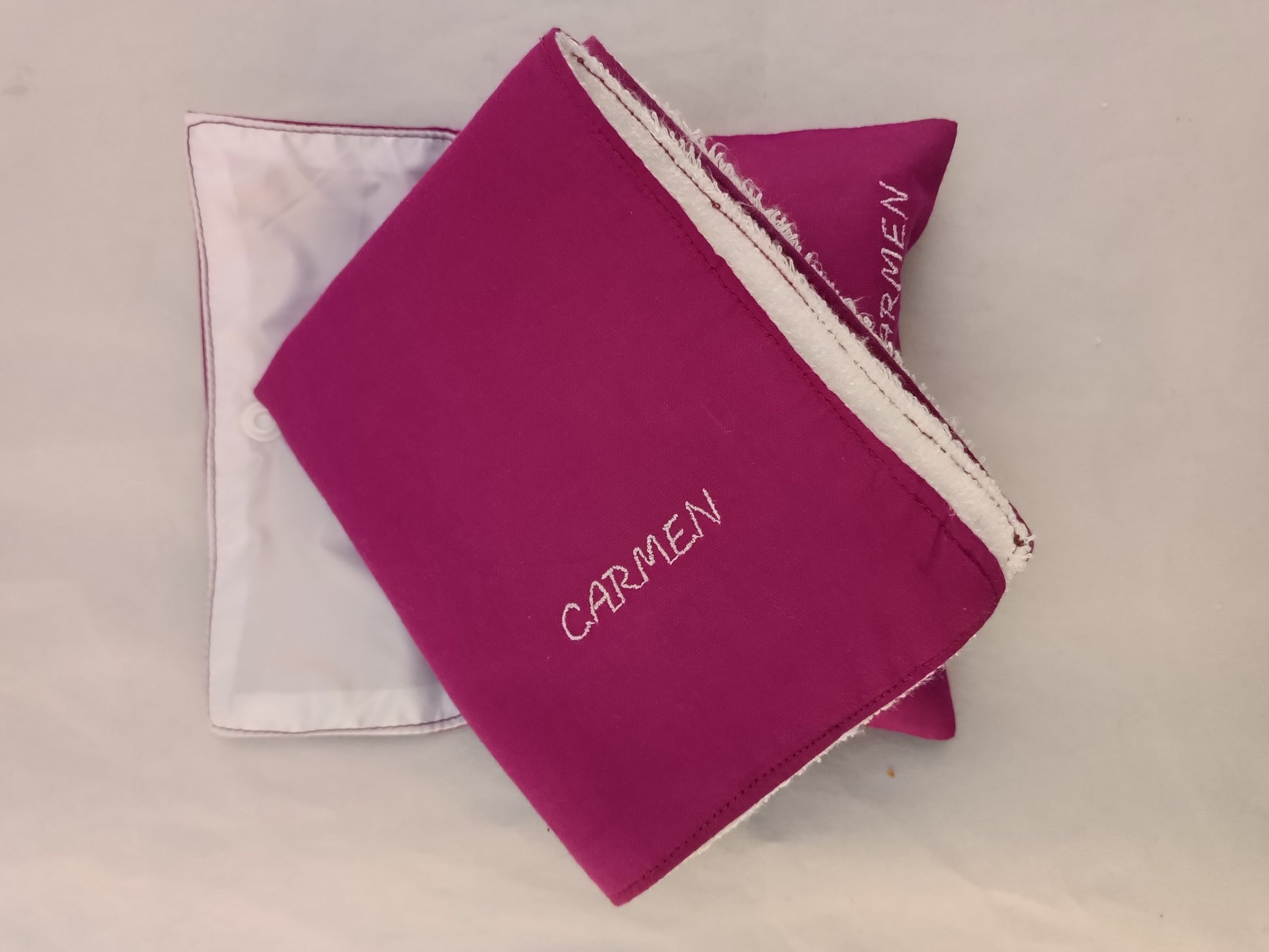 A partir de esa fecha, si quieres que llegue antes del 14, el pack puede pedirse sin bordado, hasta el día 11. Unidades limitadas. Toalla y disco desmaquillante hecho a mano por Maria Torres Collection, Burgos.